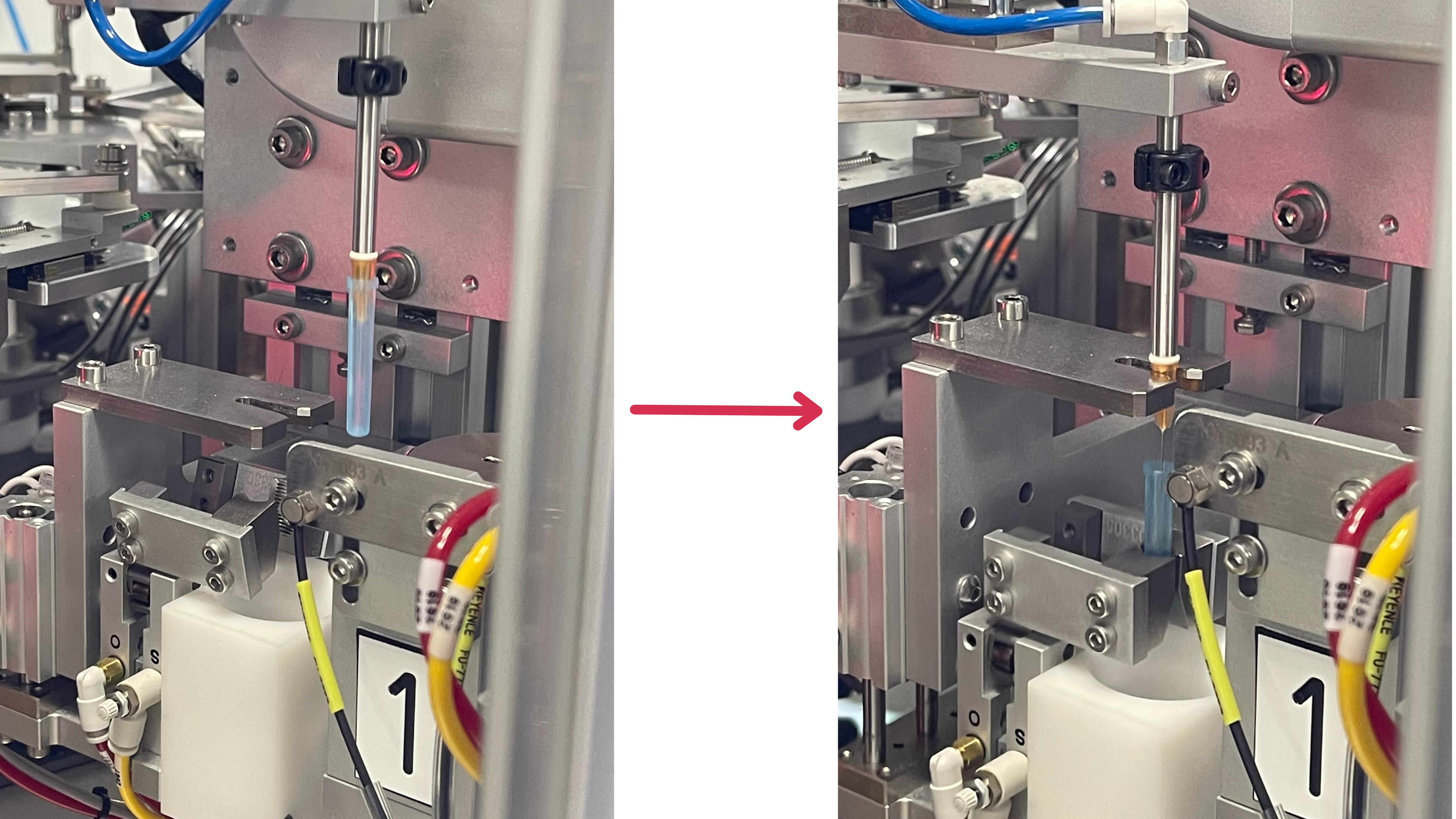 At this stage, the tube is rotated by the robotic arm. A built-in camera, guided by the selected program, ensures the tube is oriented in the correct position for subsequent processes.